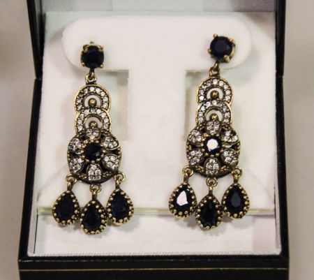8 4ct Genuine Sapphire Chandelier Sterling Silver Earrings
