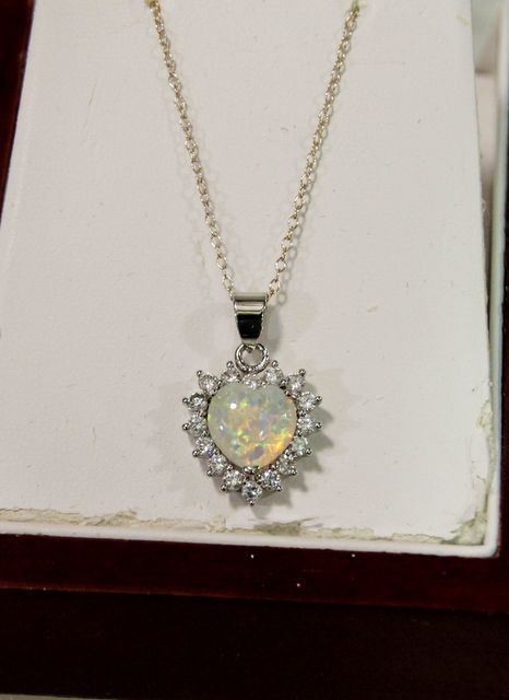 12 3ct Opal Heart Sterling Silver Necklace