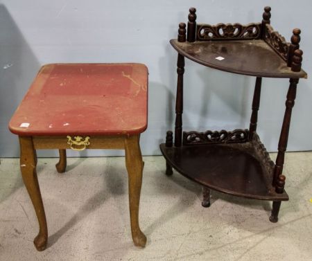Table- 17" w., 21" d., 23" h.; Etegere- 23" w., 16" d., 31" h. Table- 17" w., 21" d., 23" h.; Etegere- 23" w., 16" d., 31" h.