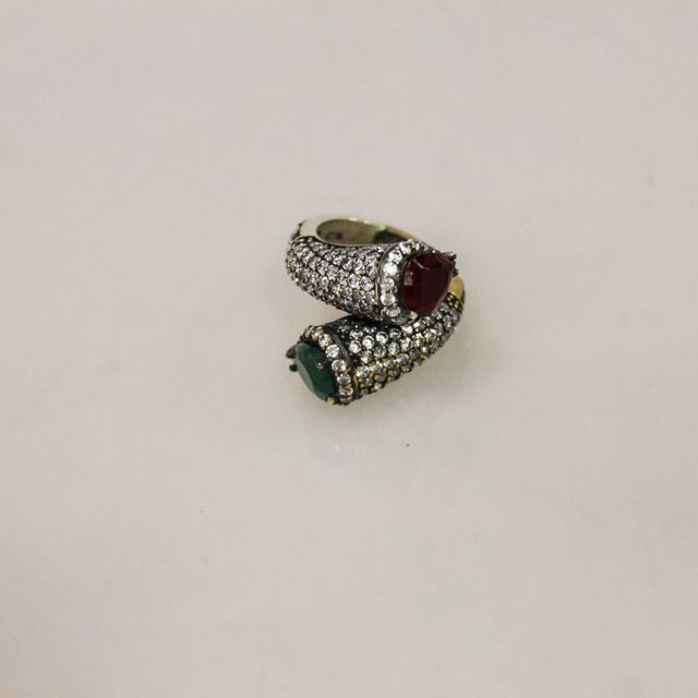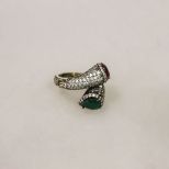 135 Genuine Ruby and Emerald Sterling Silver Dinner Ring