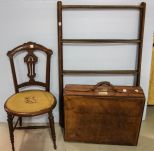1554 Eastlake Side Chair, Antique Drying Rack & Leather Suitcase