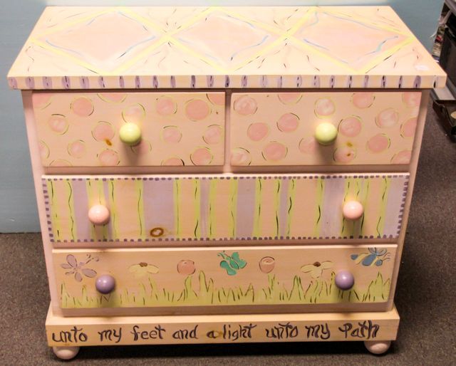 With flowers and butterflies; 38" w., 33" h., 21" d. With flowers and butterflies; 38" w., 33" h., 21" d.
