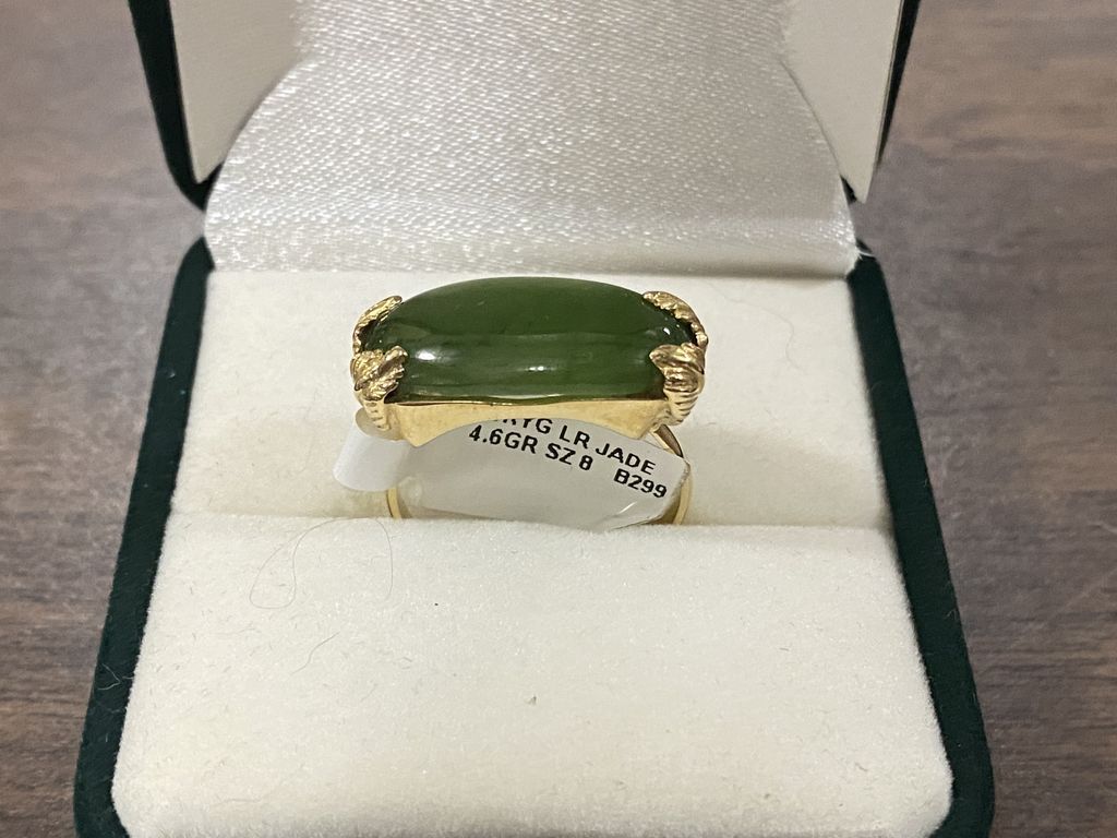 14 KYG Large Jade Ring. 4.6 grams. Size 8. Retails for $725 14 KYG Large Jade Ring. 4.6 grams. Size 8. Retails for $725