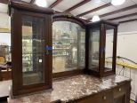Antique French Sideboard, marble top, two piece, mirrored display top, two side displays, three drawers, four doors, has age wear, 79"h., 62"w., 22"d. Antique French Sideboard, marble top, two piece, mirrored display top, two side displays, three drawers, four doors, has age wear, 79"h., 62"w., 22"d.