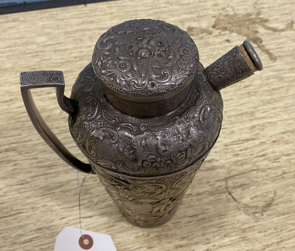English Ornate Metal Pitcher, lid, stopper, English marks, 10"h. English Ornate Metal Pitcher, lid, stopper, English marks, 10"h.
