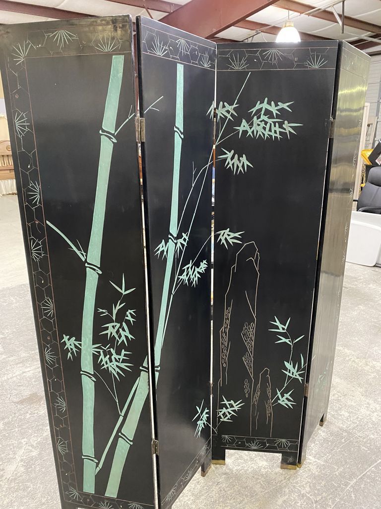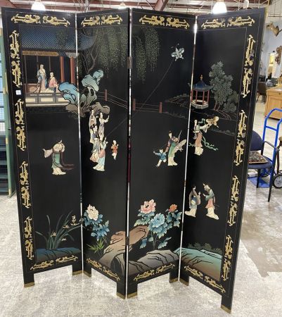 348 Four Panel Black Lacquer Oriental Screen