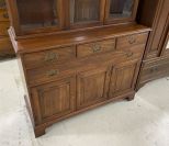 Harris Harris Co. Black Cherry Hutch, three glass door top, drawers and doors base, early American style, good condition, 75"h., 50"w., 21"d. Harris Harris Co. Black Cherry Hutch, three glass door top, drawers and doors base, early American style, good condition, 75"h., 50"w., 21"d.
