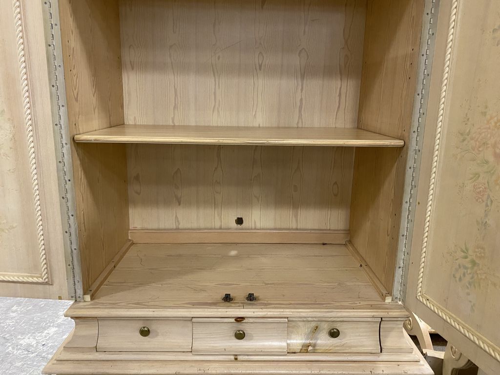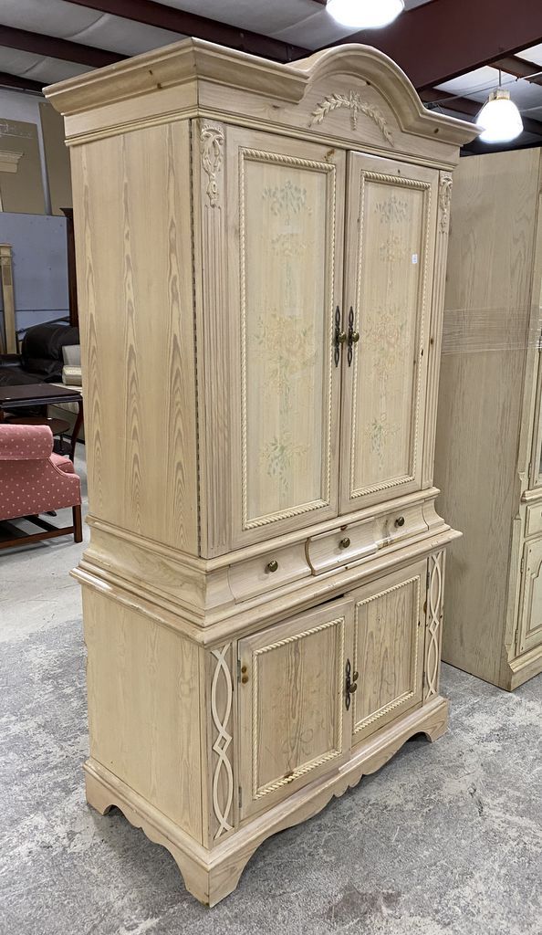 Thomasville Blonde TV Armoire, two piece, double door, three drawers, good condition, 85"h., 44"w., 24"d. Thomasville Blonde TV Armoire, two piece, double door, three drawers, good condition, 85"h., 44"w., 24"d.