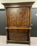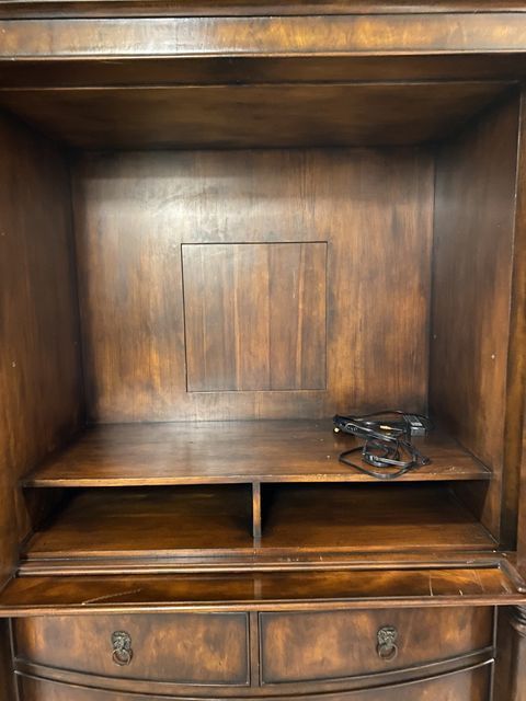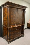Hickory White Kings Row Burl Finish Entertainment Armoire, two piece, double door, columns, claw footed, high end reproduction, light wear, 86"h., 56"w., 29"d. Retail 3500-4500 Hickory White Kings Row Burl Finish Entertainment Armoire, two piece, double door, columns, claw footed, high end reproduction, light wear, 86"h., 56"w., 29"d. Retail 3500-4500