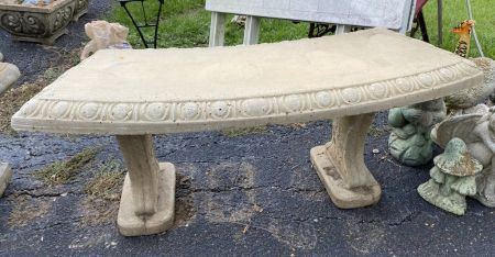 Concrete Outdoor Bench, two pedestal bases, good condition. Concrete Outdoor Bench, two pedestal bases, good condition.