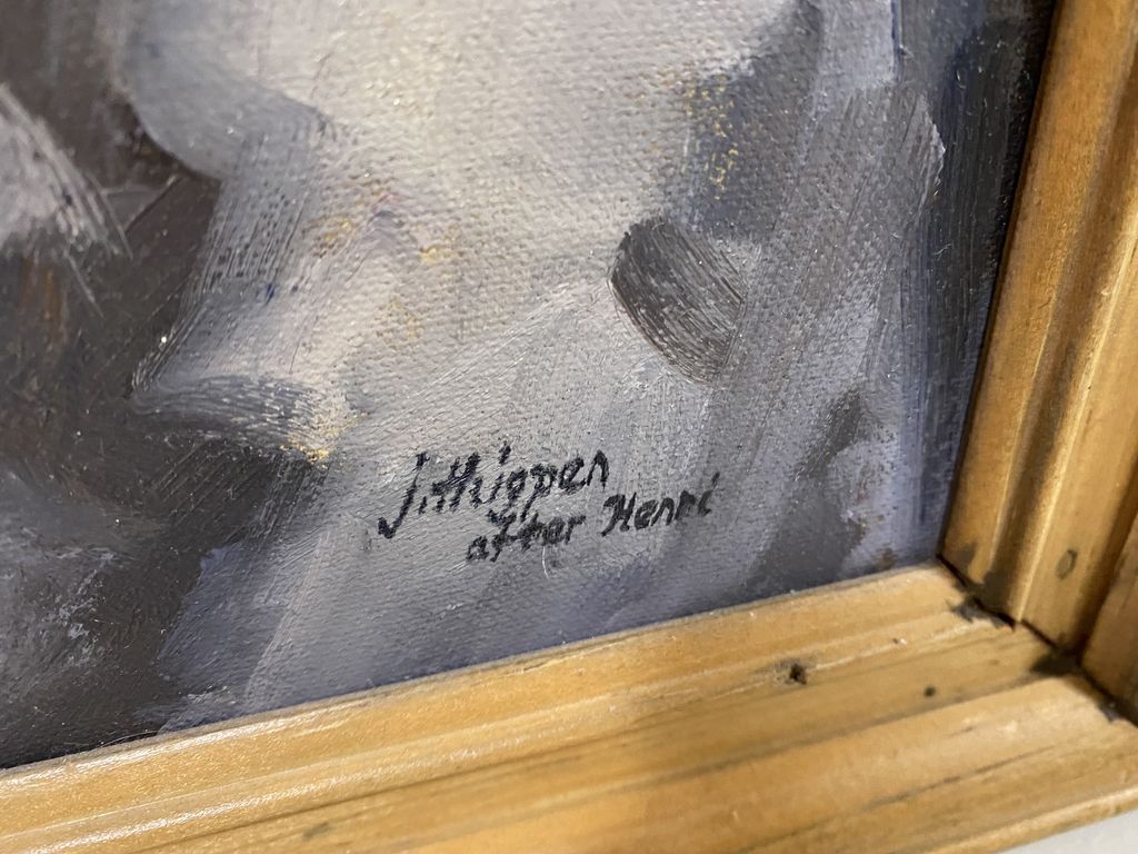J. Thigpen Portrait of a Girl Painting, After Robert Herni, framed, on canvas, 15"h., 12"w. J. Thigpen Portrait of a Girl Painting, After Robert Herni, framed, on canvas, 15"h., 12"w.