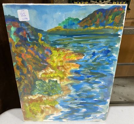 "Opposite Shores" Watercolor by B CR, unframed, 15"h., 11"w. "Opposite Shores" Watercolor by B CR, unframed, 15"h., 11"w.