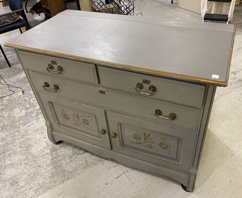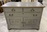 Painted Antique Buffet, three drawers, two door, has age wear, 35"h., 45"w., 24"d Painted Antique Buffet, three drawers, two door, has age wear, 35"h., 45"w., 24"d