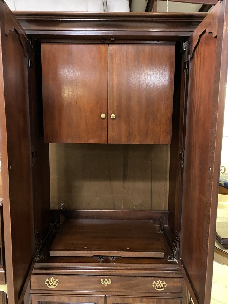 American of Martinsville Cherry Entertainment Armoire, two piece, four door, single drawer, 84"h., 34"w., 20"d. American of Martinsville Cherry Entertainment Armoire, two piece, four door, single drawer, 84"h., 34"w., 20"d.