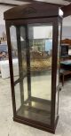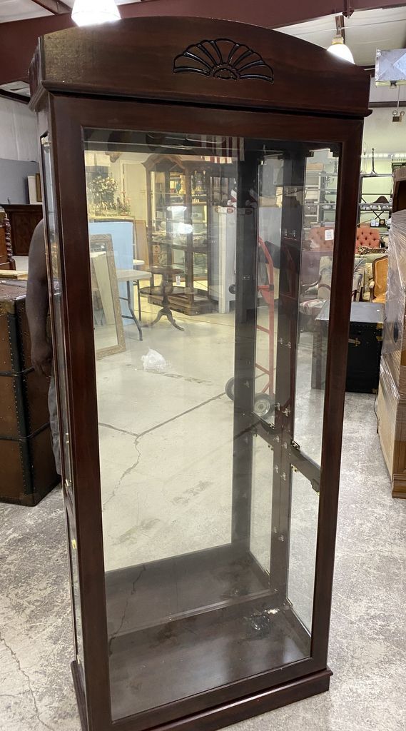 Cherry Display Cabinet, mirrored back, have glass shelves, side doors, lighted, 75"h., 29"w., 13"d. Cherry Display Cabinet, mirrored back, have glass shelves, side doors, lighted, 75"h., 29"w., 13"d.