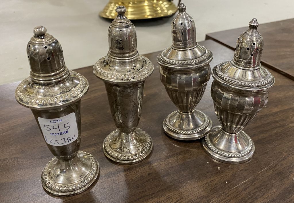 4 Weighed Sterling Salt and Peppers. One pair EMOIRE. 4 Weighed Sterling Salt and Peppers. One pair EMOIRE.