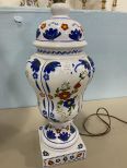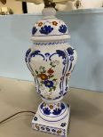 Pair of Hand Painted Blue & White Floral Table Lamps, one is missing it's shade. Pair of Hand Painted Blue & White Floral Table Lamps, one is missing it's shade.