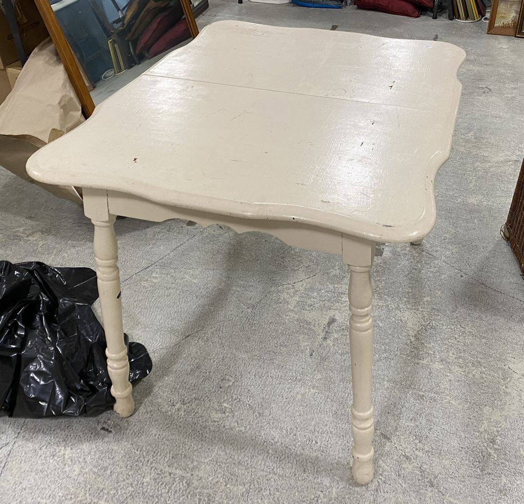 Kitchen Table With Leaf, painted white, vintage. Kitchen Table With Leaf, painted white, vintage.