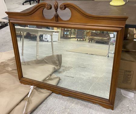 Ornate Hanging Wall Mirror, broken pediment crest, dresser mirror. Ornate Hanging Wall Mirror, broken pediment crest, dresser mirror.