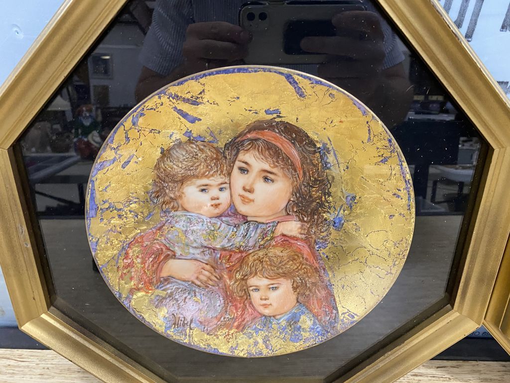 Two Framed Edna Hibel Collector Plates, shadow box framed, signed, 16"h. Two Framed Edna Hibel Collector Plates, shadow box framed, signed, 16"h.