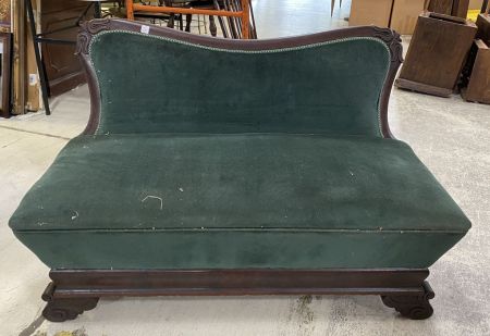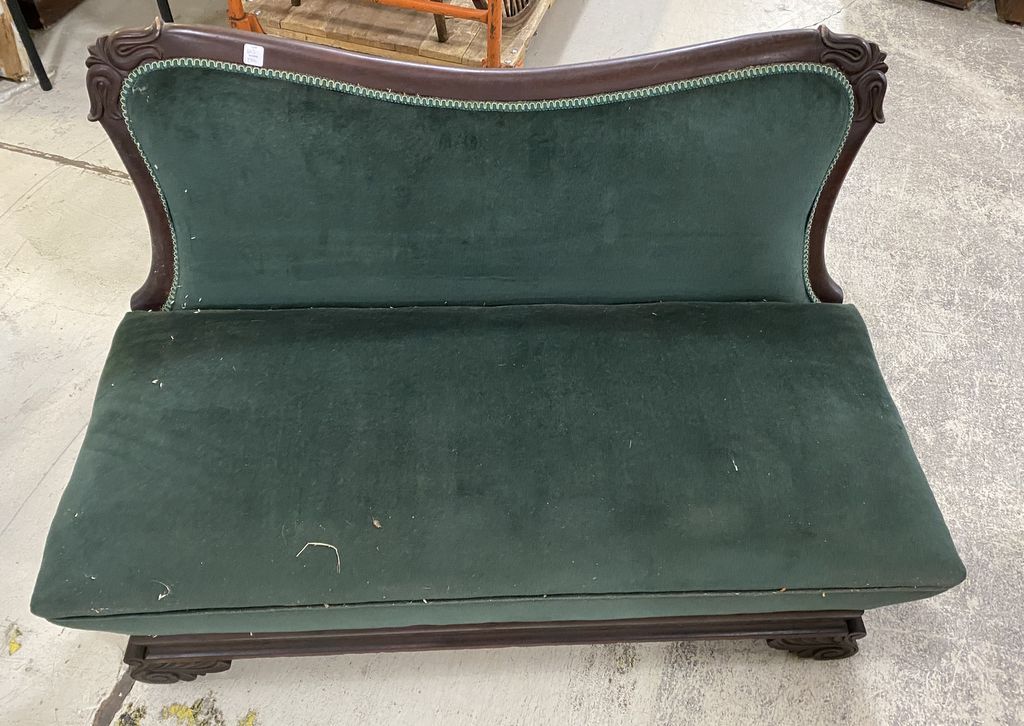 Antique Parlor Sofa, Mini sofa, one leg is damaged, back is loose, fabric is dirty, 45"w Antique Parlor Sofa, Mini sofa, one leg is damaged, back is loose, fabric is dirty, 45"w