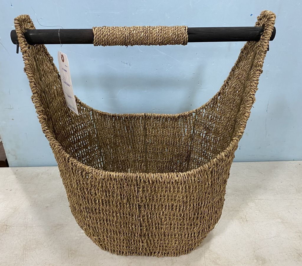 Decorative Woven Basket, wood handle, 20"h. 18"w. Decorative Woven Basket, wood handle, 20"h. 18"w.