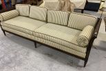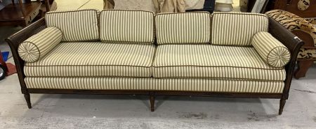 French Provincial Caned Two Cushion Sofa, pillows, light wear on framed, 96"long. French Provincial Caned Two Cushion Sofa, pillows, light wear on framed, 96"long.