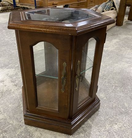 Cherry Octagon Side Table, double door, glass, with glass shelf, 21"h., 20"w. Cherry Octagon Side Table, double door, glass, with glass shelf, 21"h., 20"w.