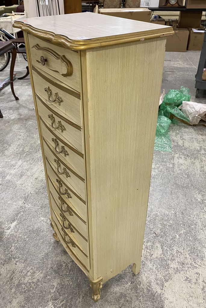 Vintage Lingerie Chest of Drawers, 9 drawers, French style, factory painted, 50"h., 19"w. Vintage Lingerie Chest of Drawers, 9 drawers, French style, factory painted, 50"h., 19"w.
