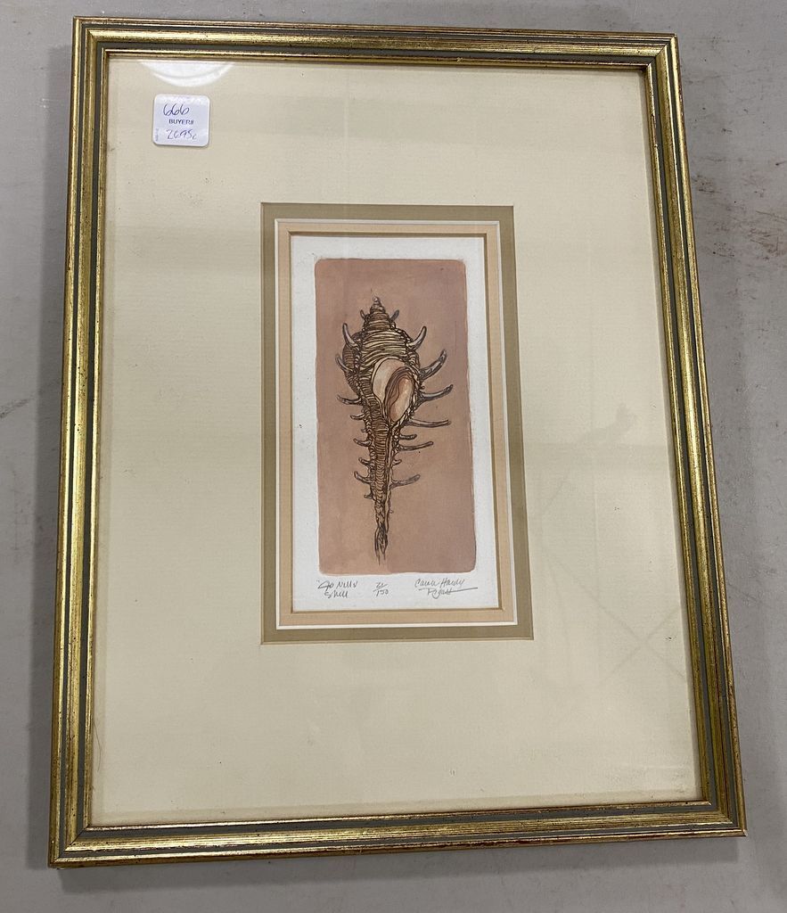 "Jo Nill's Shell" 21/150 Signed Pigatt, matted, framed, 15"h., 11"w. "Jo Nill's Shell" 21/150 Signed Pigatt, matted, framed, 15"h., 11"w.