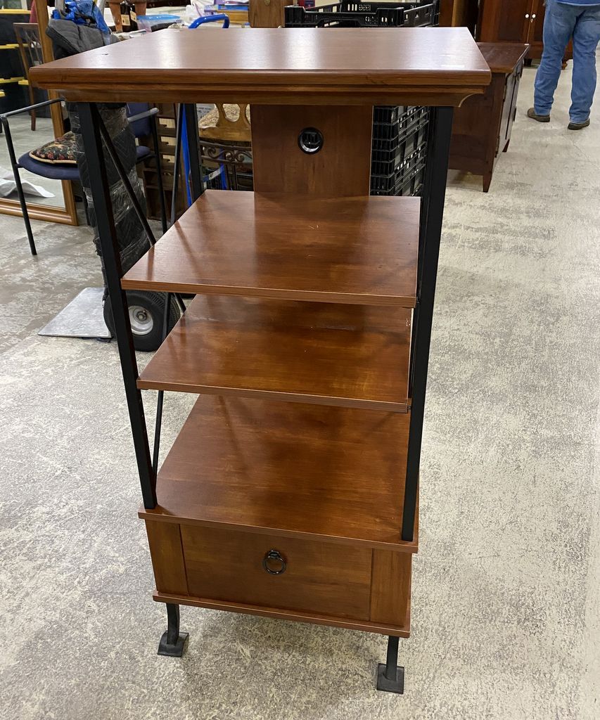 Modern Wood and Metal TV Stand, two shelf, single drawer, 44"h., 21"w. Modern Wood and Metal TV Stand, two shelf, single drawer, 44"h., 21"w.