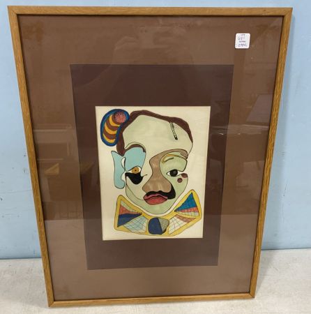 C. Metzroth Abstract Clown Art, signed, matted, framed, 25"h., 19"w. C. Metzroth Abstract Clown Art, signed, matted, framed, 25"h., 19"w.