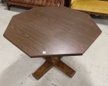 Octagon Pedestal Dining Table, Formica style top, 1970's -80's, oak finish, base has wear, 30"h., 42"w. Octagon Pedestal Dining Table, Formica style top, 1970's -80's, oak finish, base has wear, 30"h., 42"w.
