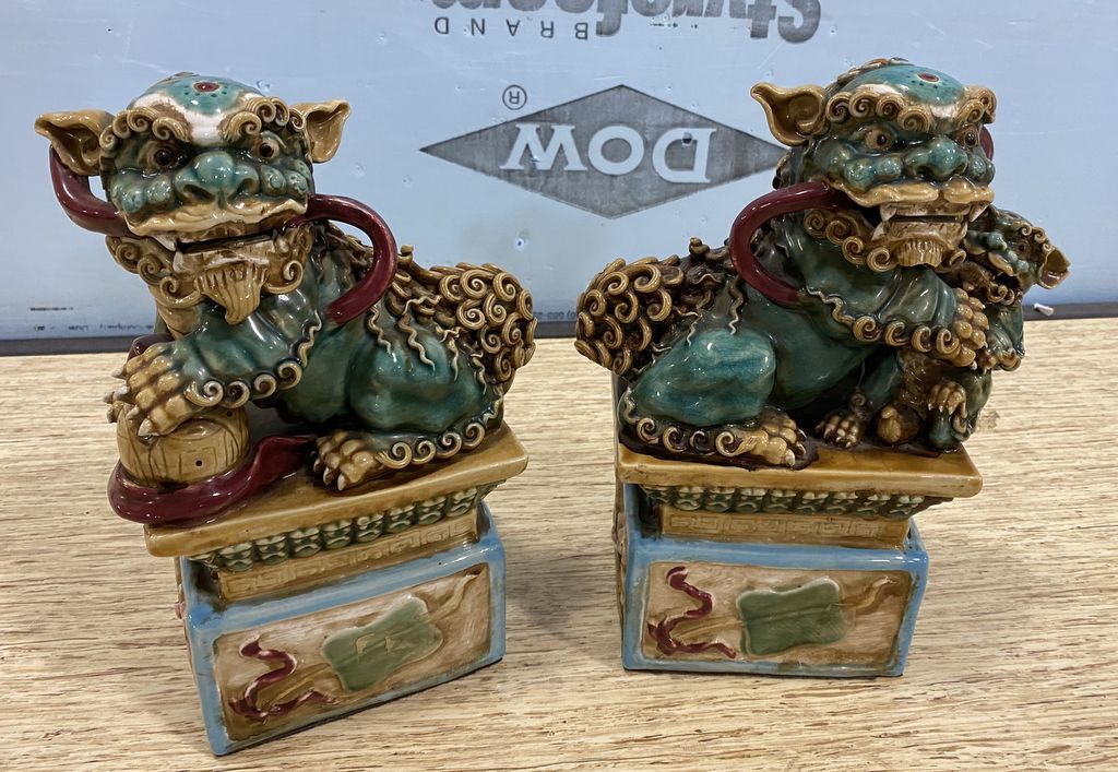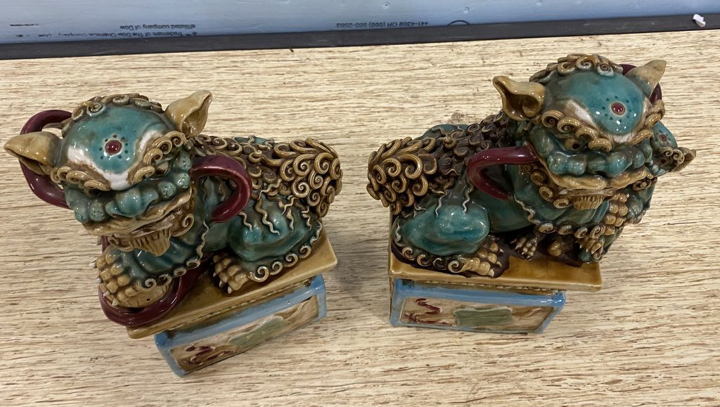 696 Pair of Chinese Pottery Foo Dogs