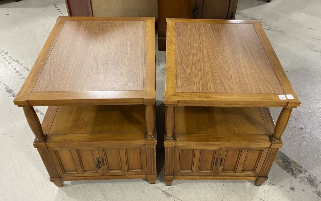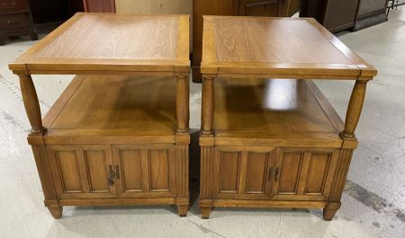 French Style Lamp Table, two tier, Oak, double door, 25"h., 27"d. French Style Lamp Table, two tier, Oak, double door, 25"h., 27"d.