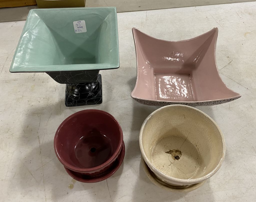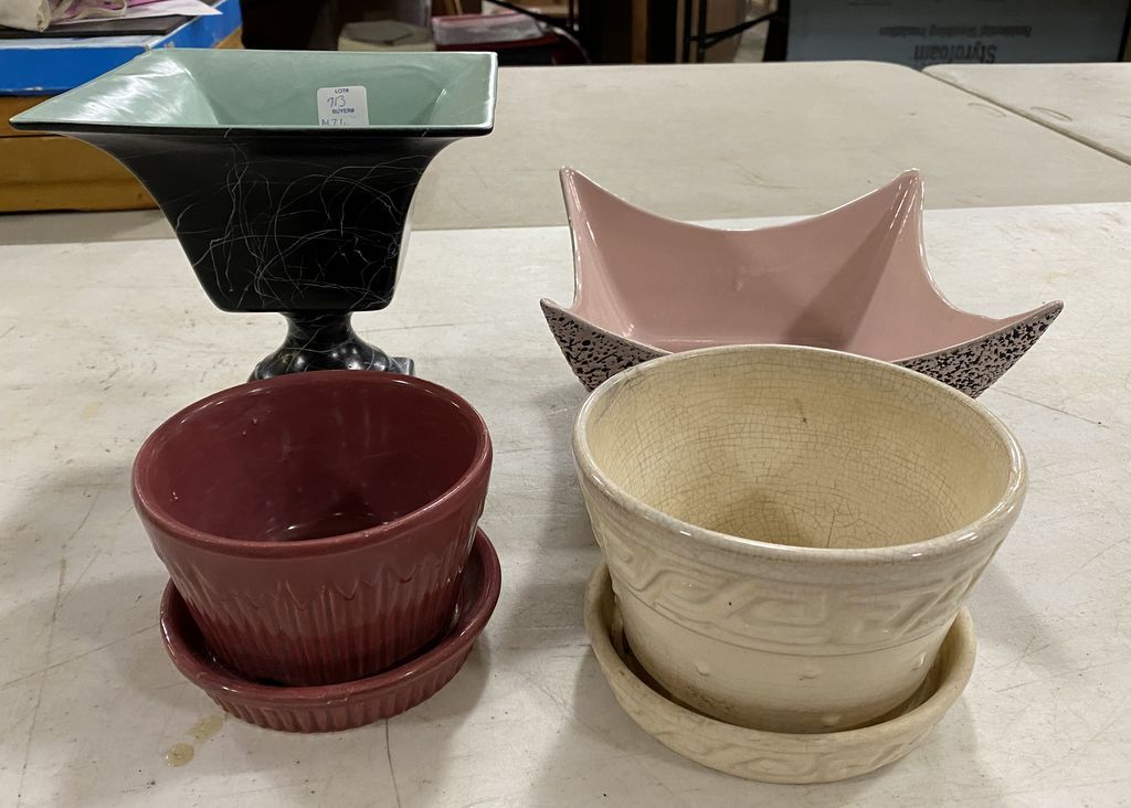 Four Vintage Pottery Planters and Flowerpots, including shawnee, Morton USA, McCoy and Vintage Florist Shop. Four Vintage Pottery Planters and Flowerpots, including shawnee, Morton USA, McCoy and Vintage Florist Shop.