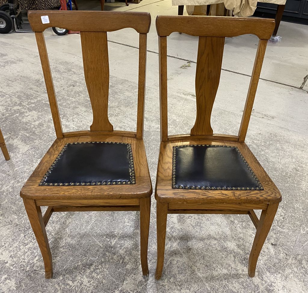 Pair of Oak T Back Side Chairs, vinyl cushions, Pair of Oak T Back Side Chairs, vinyl cushions,