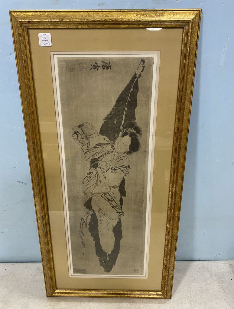 Oriental Block Print Style Framed, matted, framed, 31"h., 15"w. Oriental Block Print Style Framed, matted, framed, 31"h., 15"w.