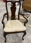 Cherry Arm Dining Chair, white fabric cushion needs cleaning. Cherry Arm Dining Chair, white fabric cushion needs cleaning.