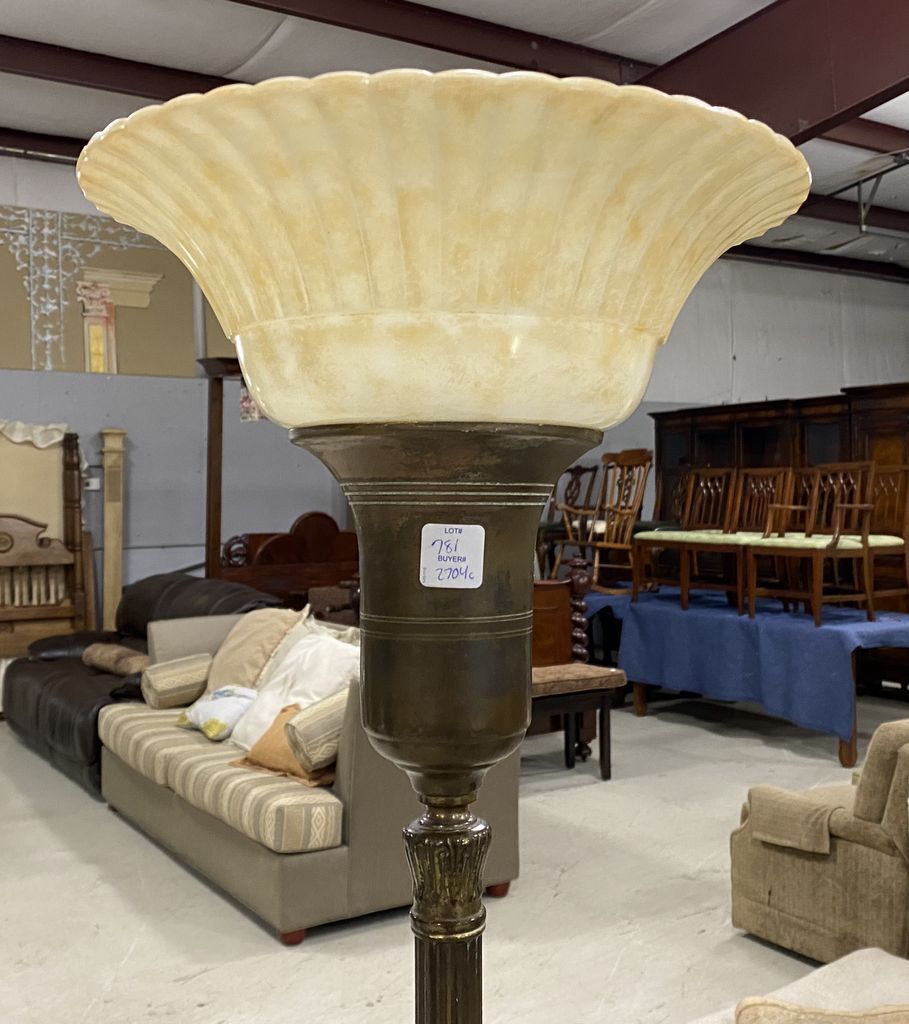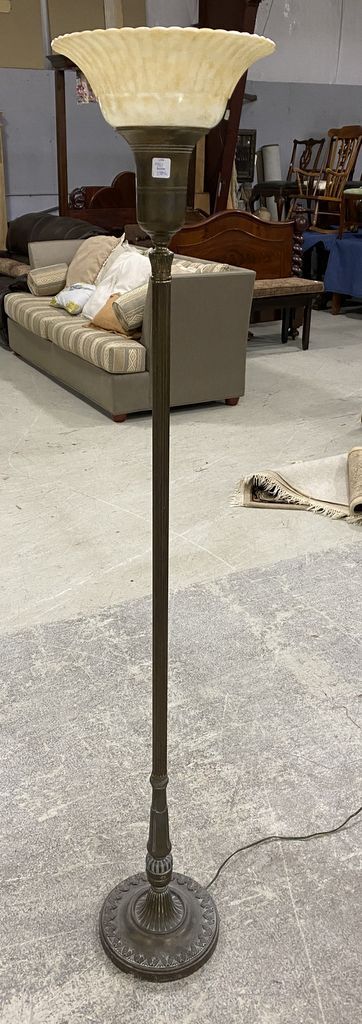 Modern Torchiere Floor Lamp, glass shade, good condition. 66"h. Modern Torchiere Floor Lamp, glass shade, good condition. 66"h.