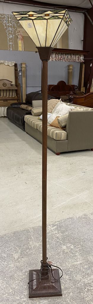 Modern Torchiere Floor Lamp, multi color glass shade, 72"h. Modern Torchiere Floor Lamp, multi color glass shade, 72"h.