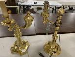 Pair of Gold Lamps, desk lamp, not matching, with shades. Pair of Gold Lamps, desk lamp, not matching, with shades.