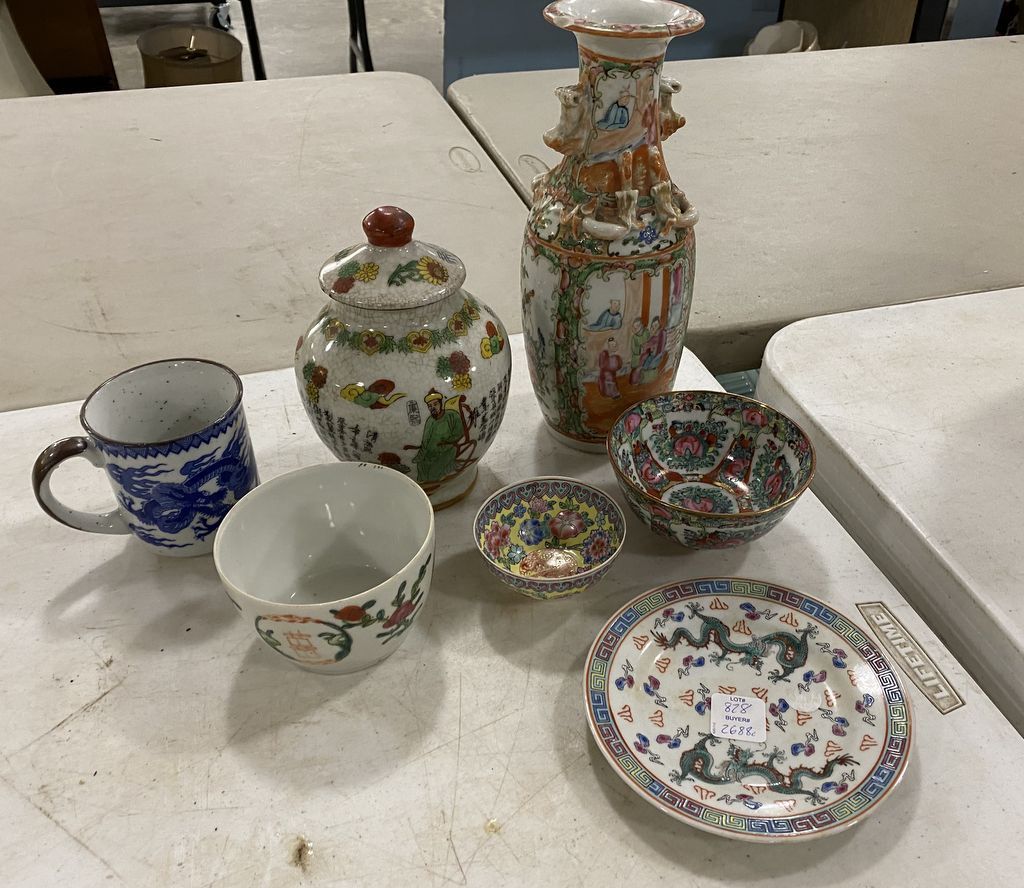 Group of Chinese Porcelain. Hand painted vase, ginger jar, soup bowls, and mug Group of Chinese Porcelain. Hand painted vase, ginger jar, soup bowls, and mug