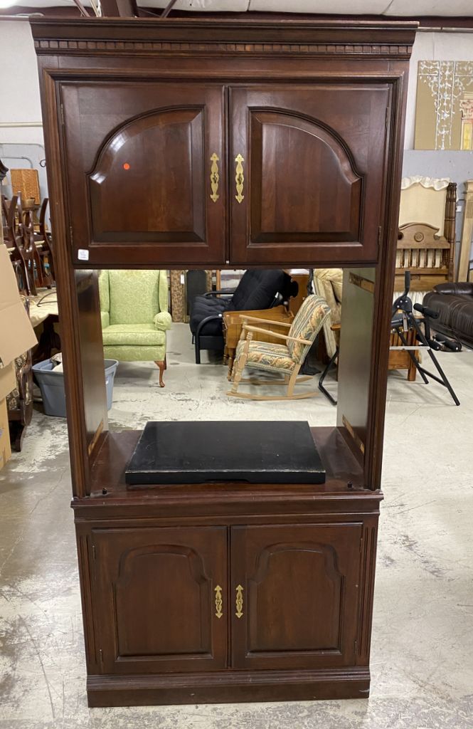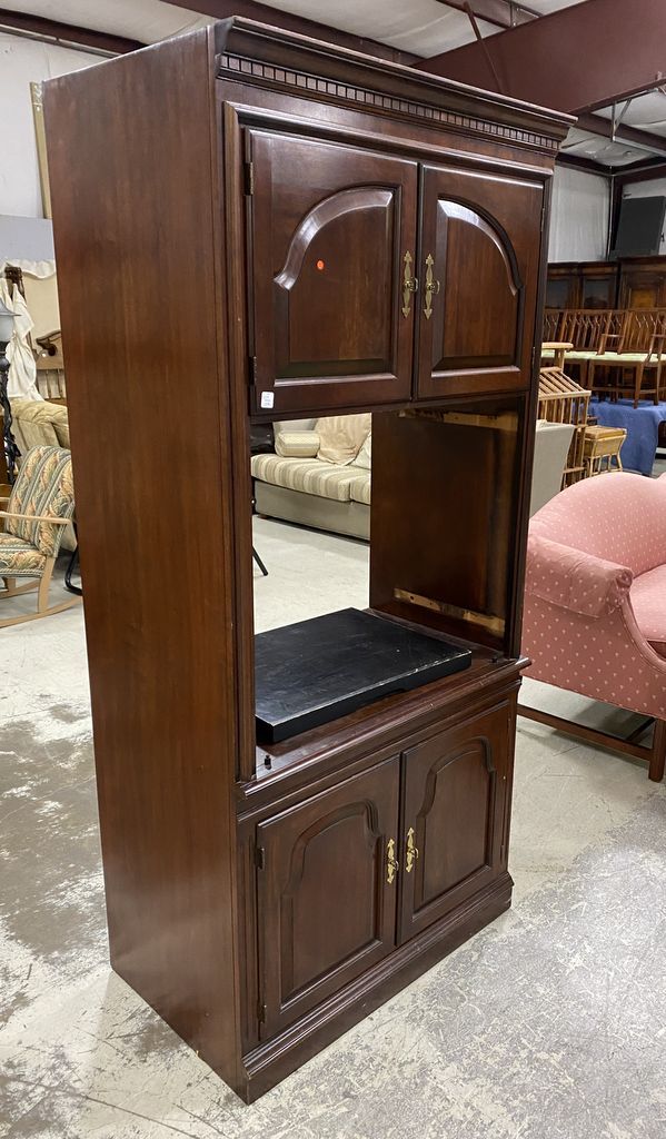 Cherry TV Entertainment cabinet, missing back, has wear, 78"h., 38"w. Cherry TV Entertainment cabinet, missing back, has wear, 78"h., 38"w.