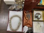 Group of Costume Jewelry. Chokers, necklaces, earrings, and more. In Jack Daniels whiskey tin Group of Costume Jewelry. Chokers, necklaces, earrings, and more. In Jack Daniels whiskey tin