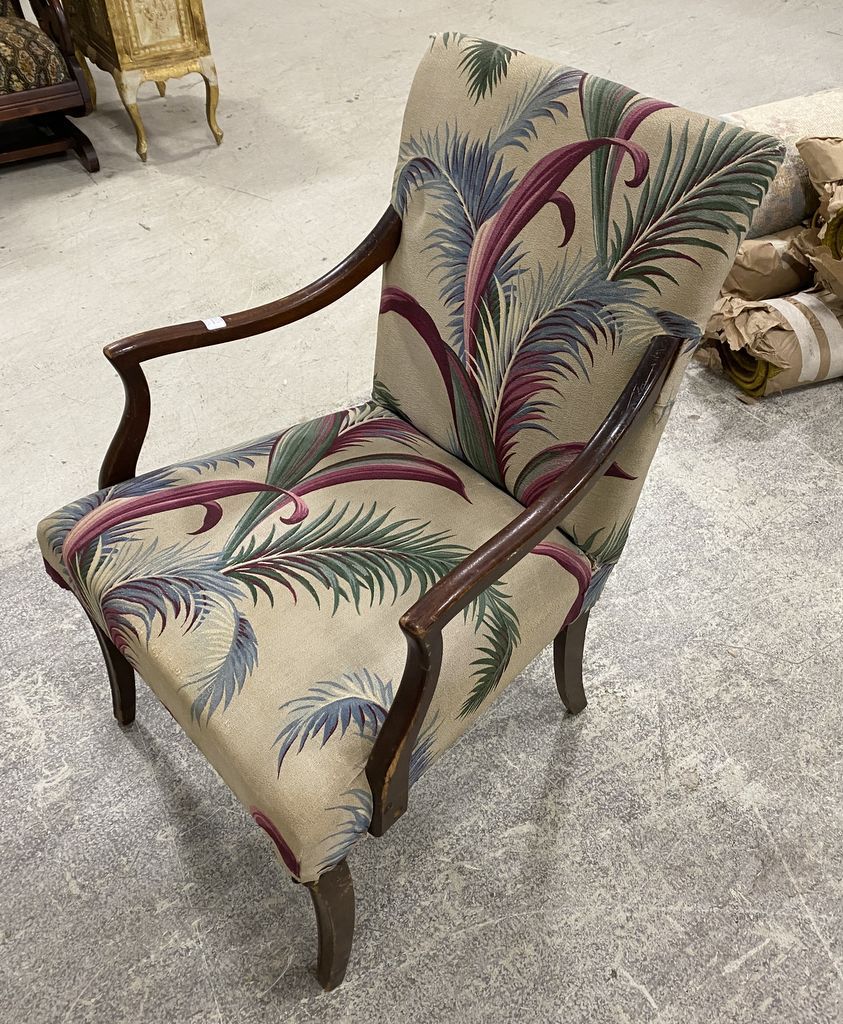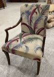 Cherry Upholstered Arm Chair, used condition, has wear. Cherry Upholstered Arm Chair, used condition, has wear.