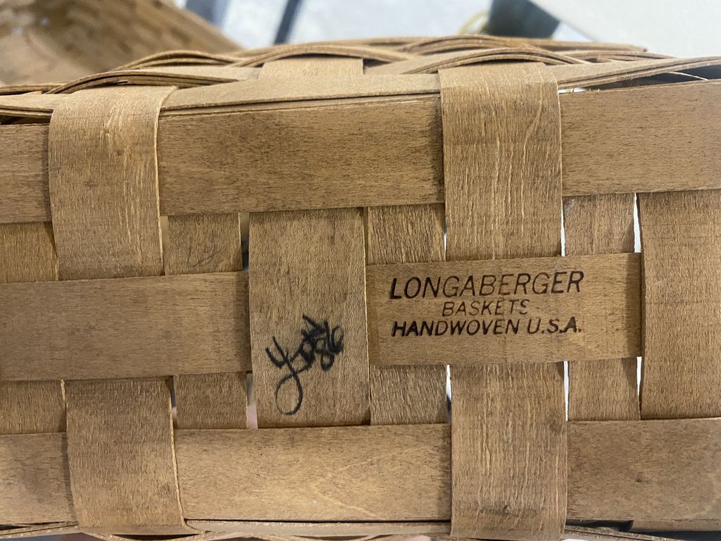 Handwoven Longaberger Basket. signed YIH 86'. 7.5" h. Handwoven Longaberger Basket. signed YIH 86'. 7.5" h.