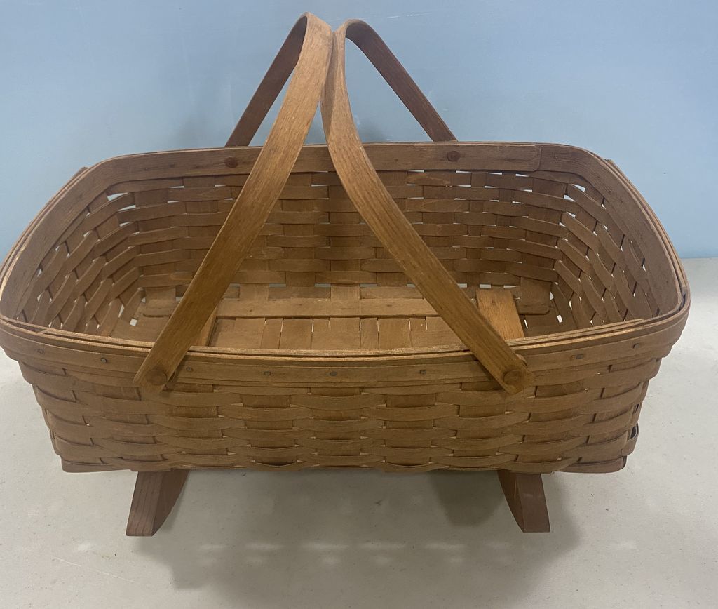 854 Handwoven Longaberger Basket, Foldable Handles with Rockers