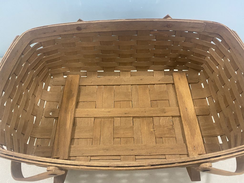 Handwoven Longaberger Basket, Foldable Handles with Rockers. Signed DWP 85'.14.5" h. Handwoven Longaberger Basket, Foldable Handles with Rockers. Signed DWP 85'.14.5" h.