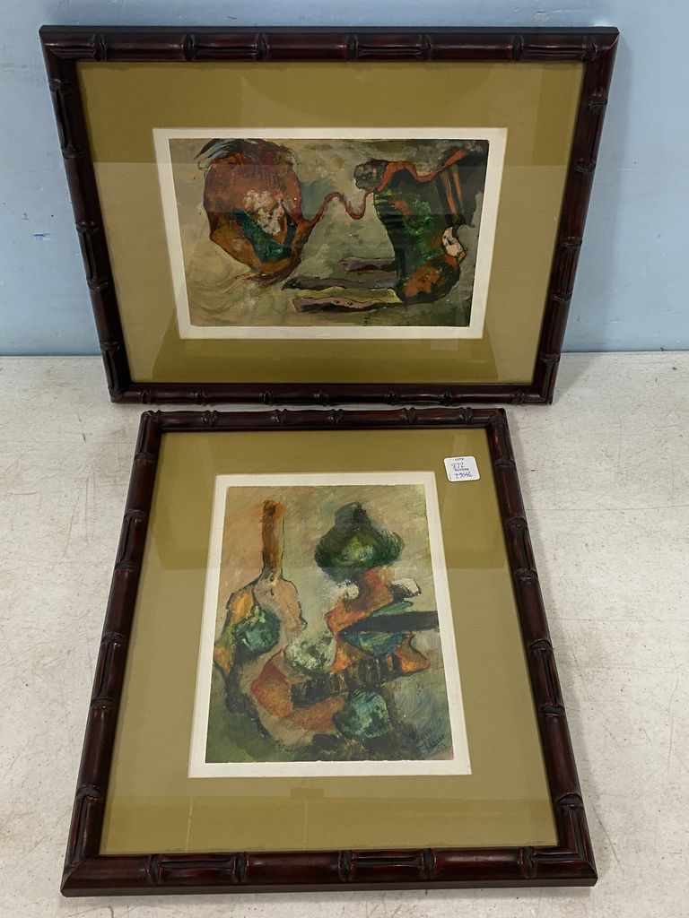 Pair of Lanier Signed 1973 Artworks, matted, framed, 15"h., 12"w. Pair of Lanier Signed 1973 Artworks, matted, framed, 15"h., 12"w.